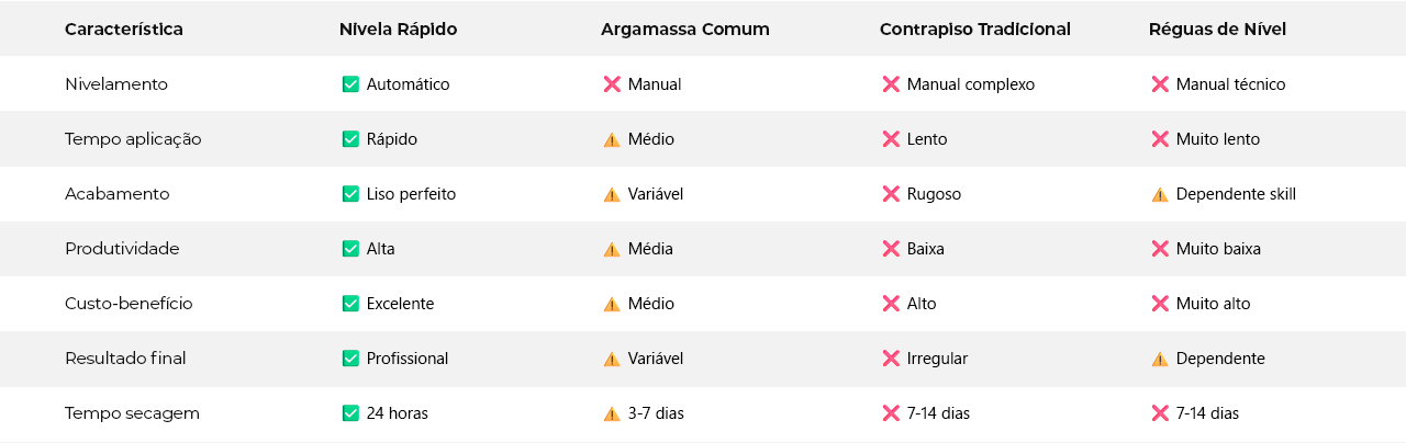 Comparativo: Nivela Rápido vs. Métodos Tradicionais