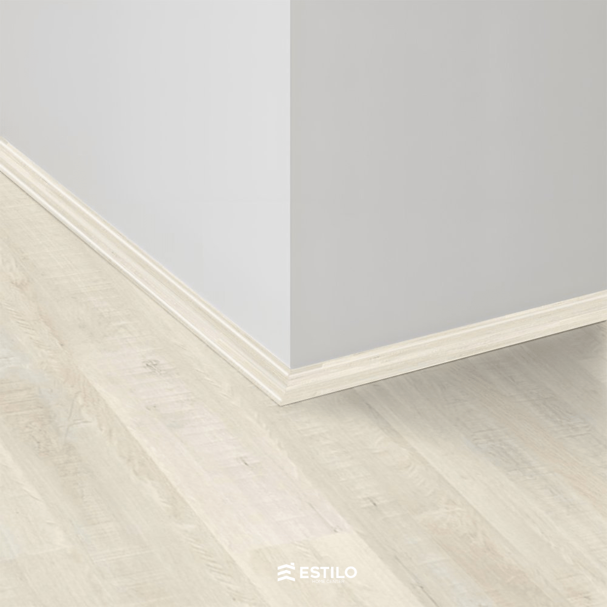 A Cantoneira Quick-Step fornece um acabamento perfeito para o seu piso. Quando necessário, também pode ser combinada com um rodapé já instalado, sendo utilizada principalmente em ambientes com móveis sob medida, contornando-os.