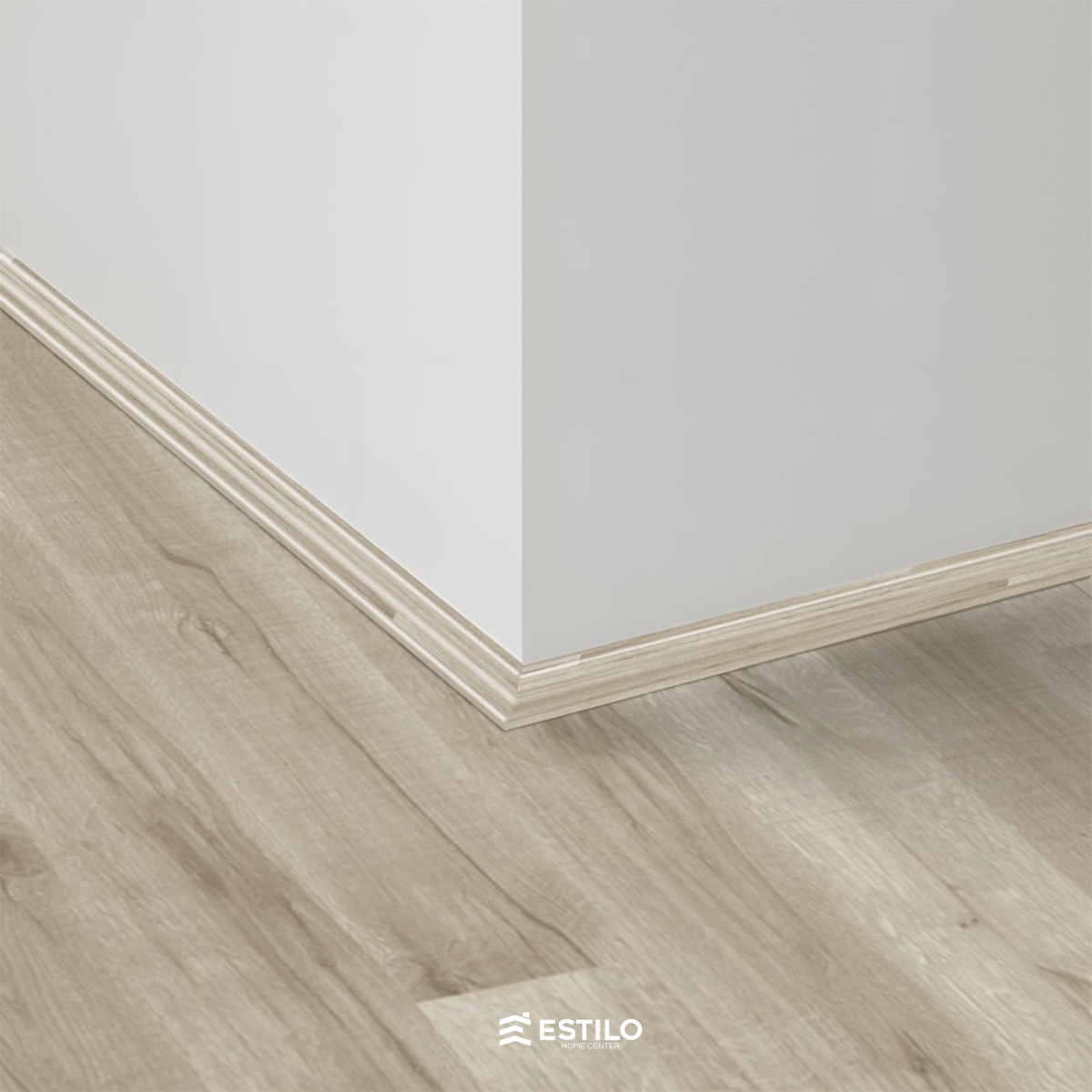 A Cantoneira Quick-Step fornece um acabamento perfeito para o seu piso. Quando necessário, também pode ser combinada com um rodapé já instalado, sendo utilizada principalmente em ambientes com móveis sob medida, contornando-os.