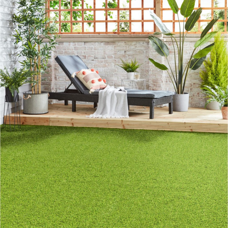 Fabricada com fios de polipropileno e base em látex, essa grama possui excelente resistência ao sol e à chuva, garantindo durabilidade e um acabamento impecável. Fácil de limpar, não exige manutenção como corte, adubação ou irrigação.