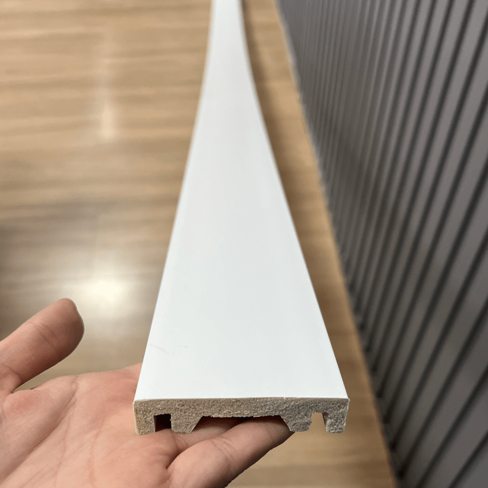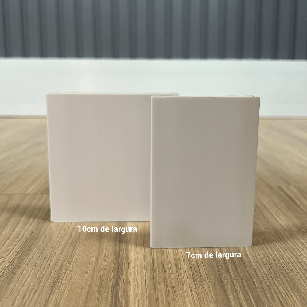 Acabamento elegante para portas, janelas e rodapés, com design frisado que valoriza a transição entre piso e parede.