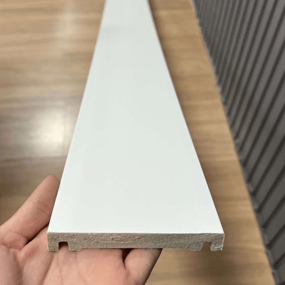 Acabamento elegante para portas, janelas e rodapés, com design frisado que valoriza a transição entre piso e parede.