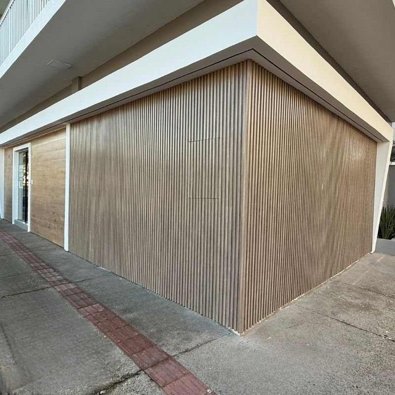 Com seu visual ripado sofisticado, ele transforma fachadas, varandas, muros e áreas gourmet em ambientes únicos e acolhedores, unindo funcionalidade e design contemporâneo. Fácil de instalar e com baixa manutenção, o painel também contribui para o isolamento acústico e térmico, agregando ainda mais valor ao seu projeto.