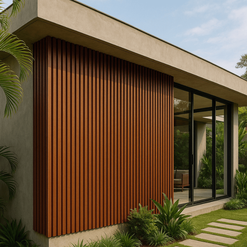 Com seu visual ripado sofisticado, ele transforma fachadas, varandas, muros e áreas gourmet em ambientes únicos e acolhedores, unindo funcionalidade e design contemporâneo. Fácil de instalar e com baixa manutenção, o painel também contribui para o isolamento acústico e térmico, agregando ainda mais valor ao seu projeto.