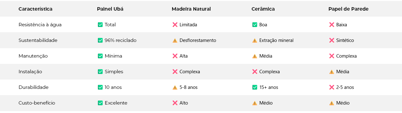 Comparativo: Painel Ubá vs. Outros Revestimentos
