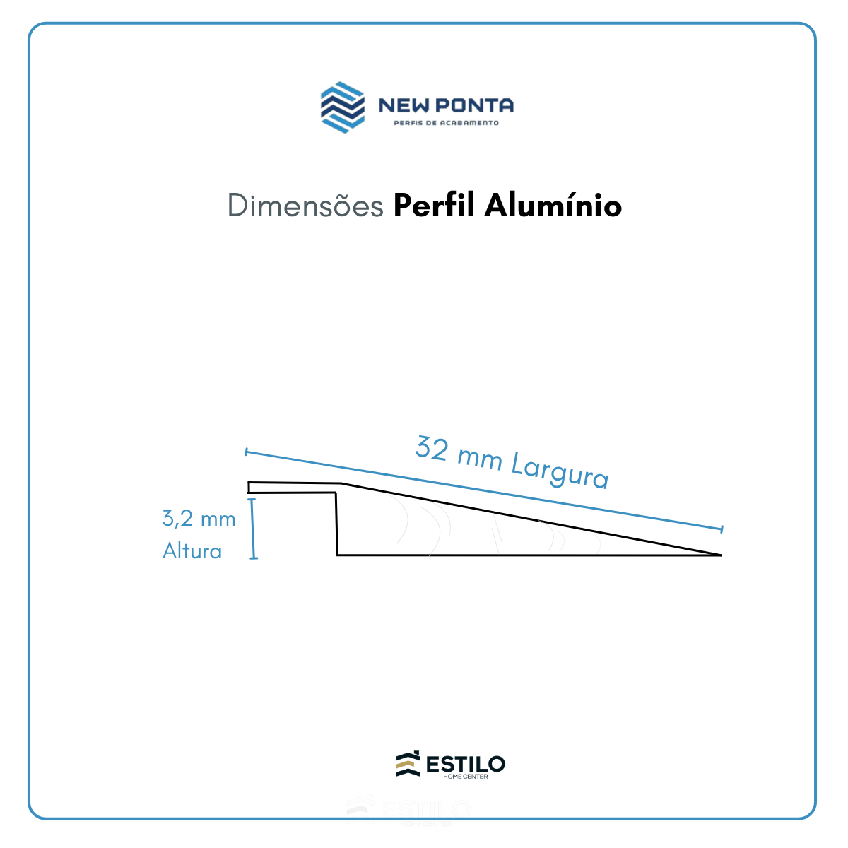 Tipo de Produto Perfil de Alumínio Tipo de instalação Cola ou parafuso Altura 3,2mm Largura 3,2cm Comprimento 100cm(1mt) Material Alumínio Local indicado Pisos Cor Champanhe