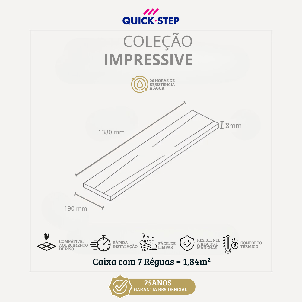 Características Piso Laminado Quick Step Impressive Carvalho Marrom Acinzentado 01850 Cx 1,84m²;