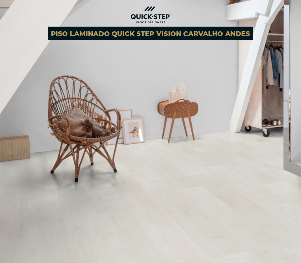 Além de sua tecnologia inovadora, o Quick Step VISION Carvalho Andes se destaca pela robusta espessura de 8 mm e por suas réguas longas de 1,80 m, que criam um visual mais moderno, contínuo e elegante, ampliando a percepção de espaço e reforçando a sofisticação do ambiente.
