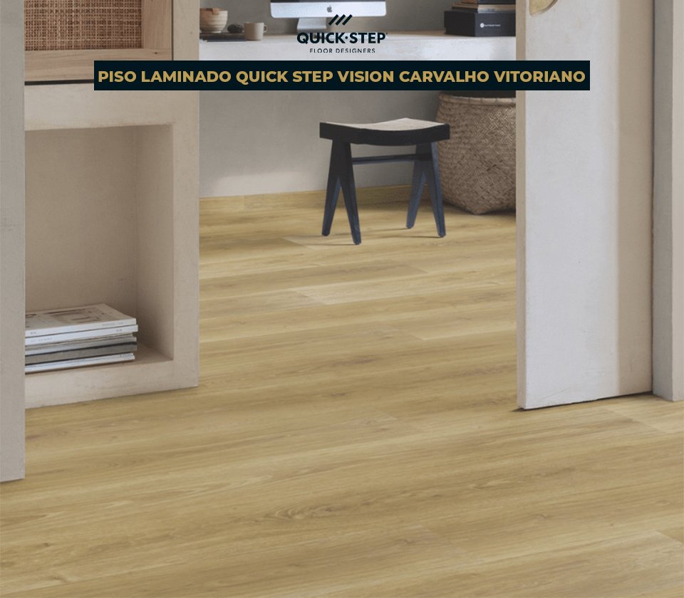 Além de sua tecnologia inovadora, o Quick Step VISION Carvalho Vitoriano se destaca pela robusta espessura de 8 mm e por suas réguas longas de 1,80 m, que criam um visual mais moderno, contínuo e elegante, ampliando a percepção de espaço e reforçando a sofisticação do ambiente.
