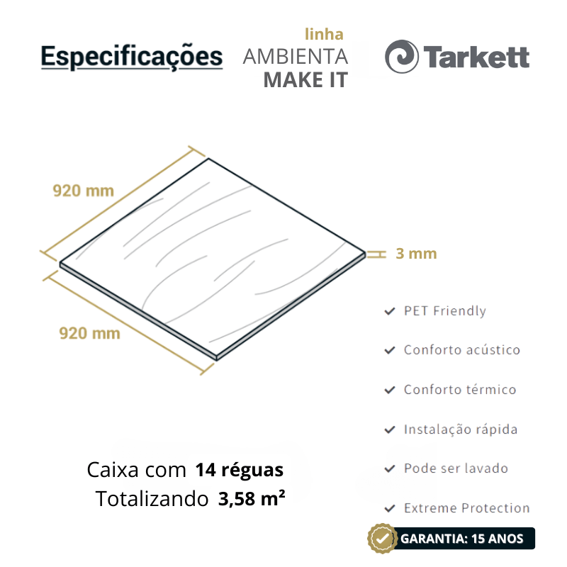 Durabilidade Superior: Com espessura de 3mm e proteção EXTREME PROTECTION, o piso é altamente resistente a abrasões, impactos e desgaste, garantindo uma longa vida útil mesmo em áreas de tráfego intenso.