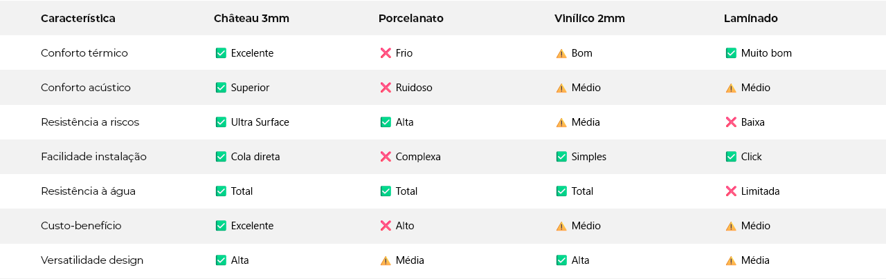 Comparativo: Château vs. Porcelanato vs. Outros Vinílicos