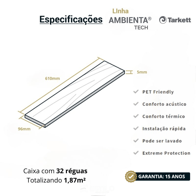 Caractéristicas do Piso Vinilico SPC Click Tarkett Ambienta Tech 5mm - Ameixa Cx 1,87m²