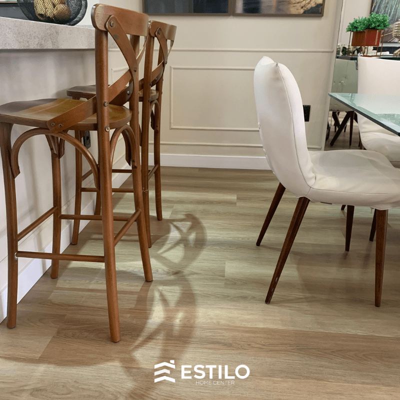 Tecnologia de ponta (SPC Click): Piso com núcleo rígido e resistente à água, ideal para qualquer ambiente interno, inclusive cozinhas e banheiros.