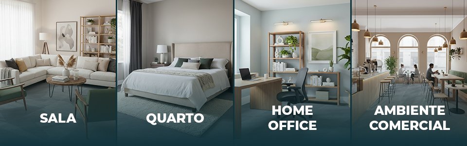 • Home offices e escritórios com tráfego leve | • Corredores e áreas de circulação