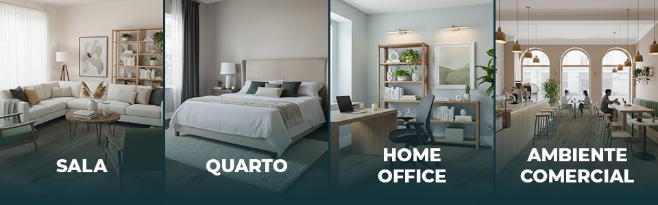 • Home offices e escritórios com tráfego leve | • Corredores e áreas de circulação