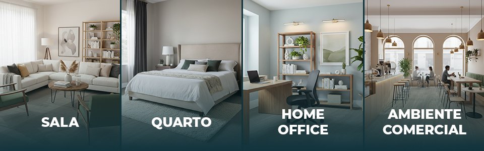• Home offices e escritórios com tráfego leve | • Corredores e áreas de circulação