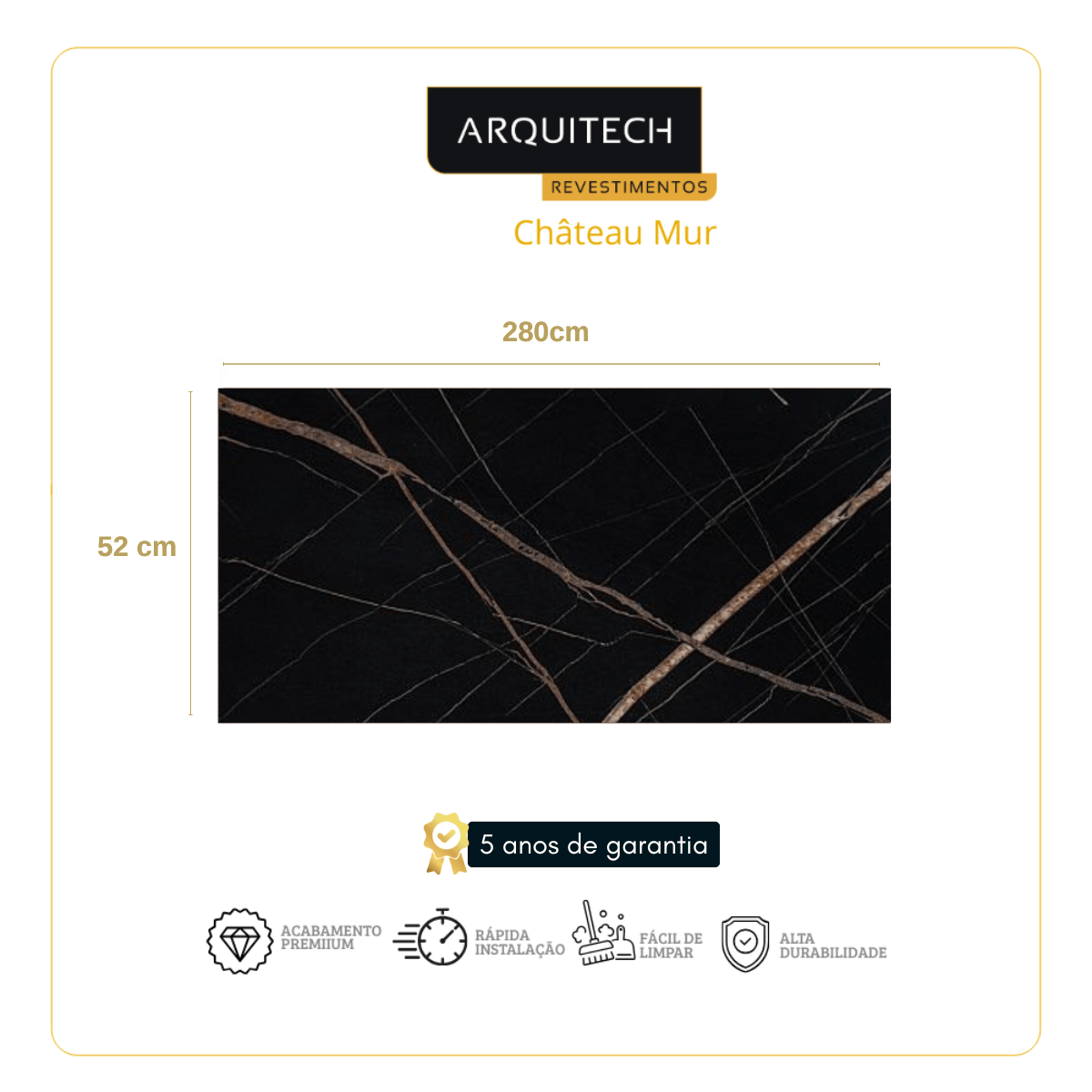 O Château Mur utiliza sistema de instalação colado, garantindo aderência perfeita e durabilidade máxima. A superfície deve estar limpa, seca e nivelada para melhor resultado final.