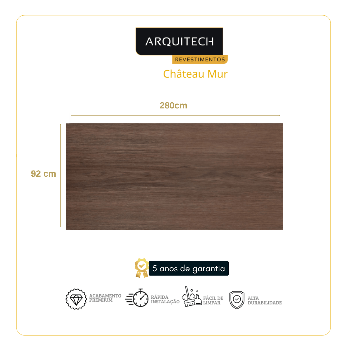 O Château Mur utiliza sistema de instalação colado, garantindo aderência perfeita e durabilidade máxima. A superfície deve estar limpa, seca e nivelada para melhor resultado final.