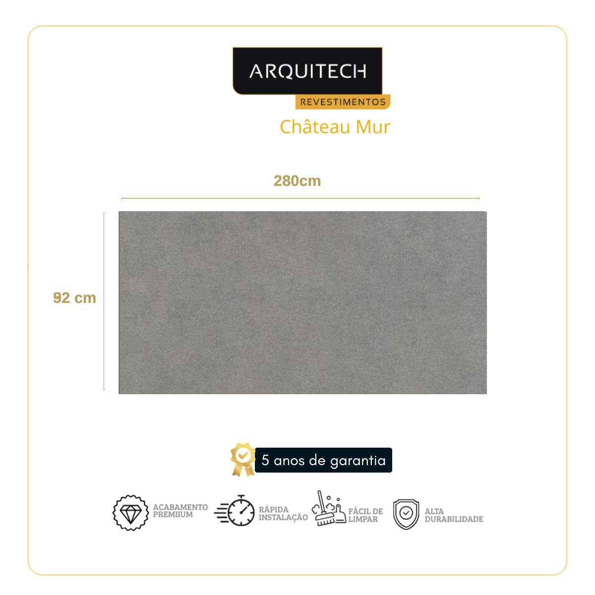 O Château Mur utiliza sistema de instalação colado, garantindo aderência perfeita e durabilidade máxima. A superfície deve estar limpa, seca e nivelada para melhor resultado final.