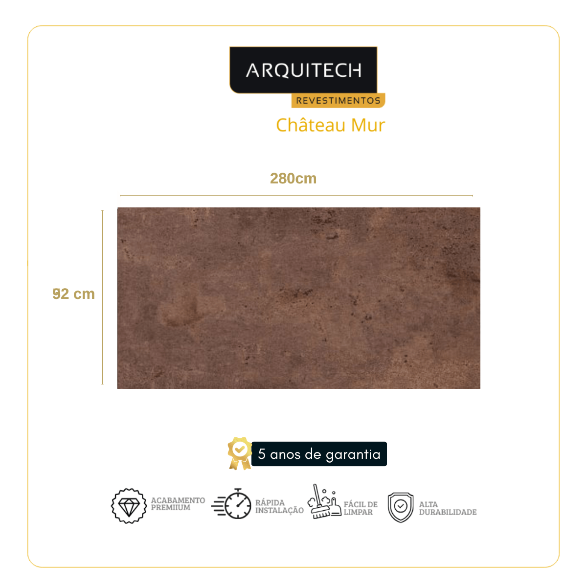 O Château Mur utiliza sistema de instalação colado, garantindo aderência perfeita e durabilidade máxima. A superfície deve estar limpa, seca e nivelada para melhor resultado final.