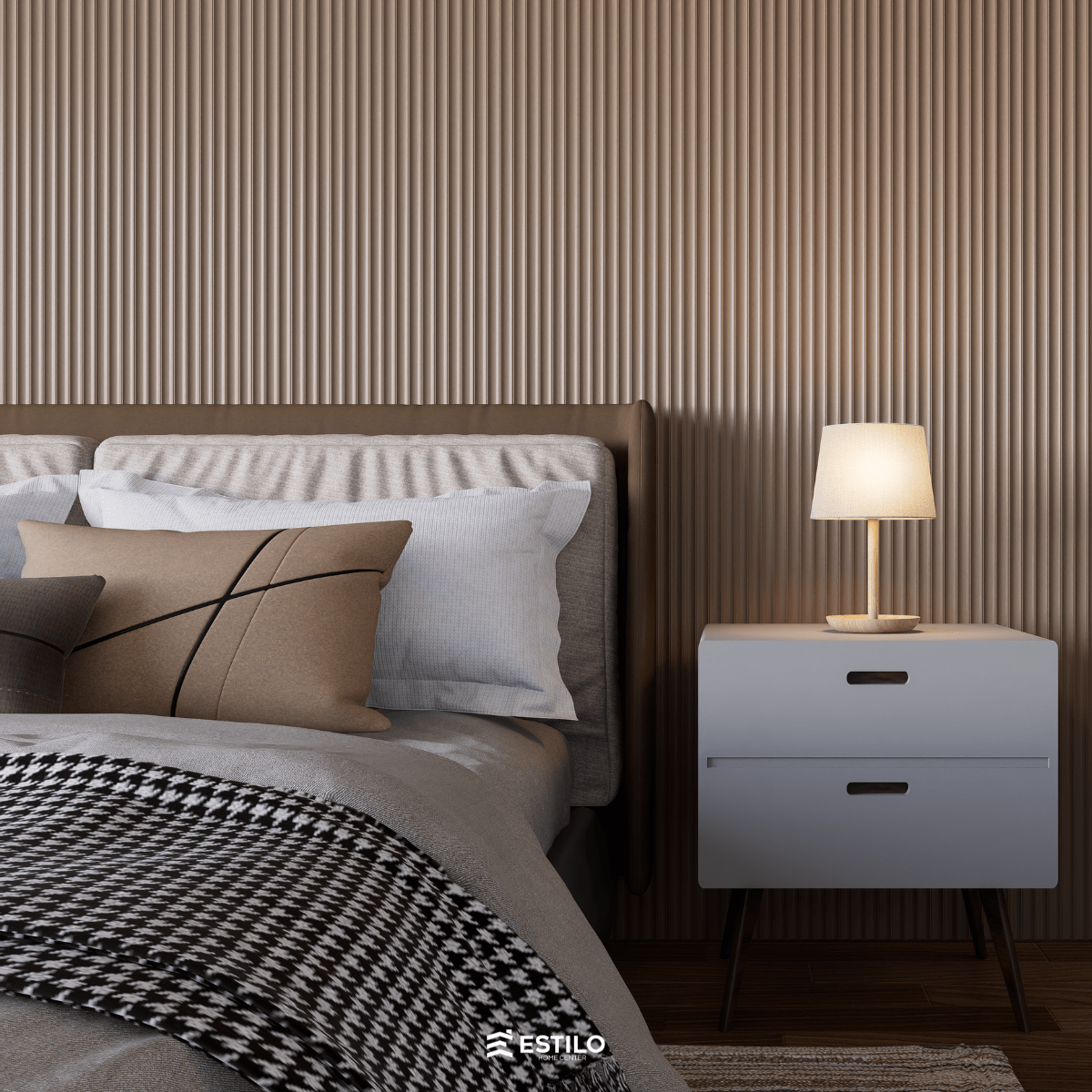 - Cabeceira ripada: Substitua a cabeceira tradicional por painel fixo