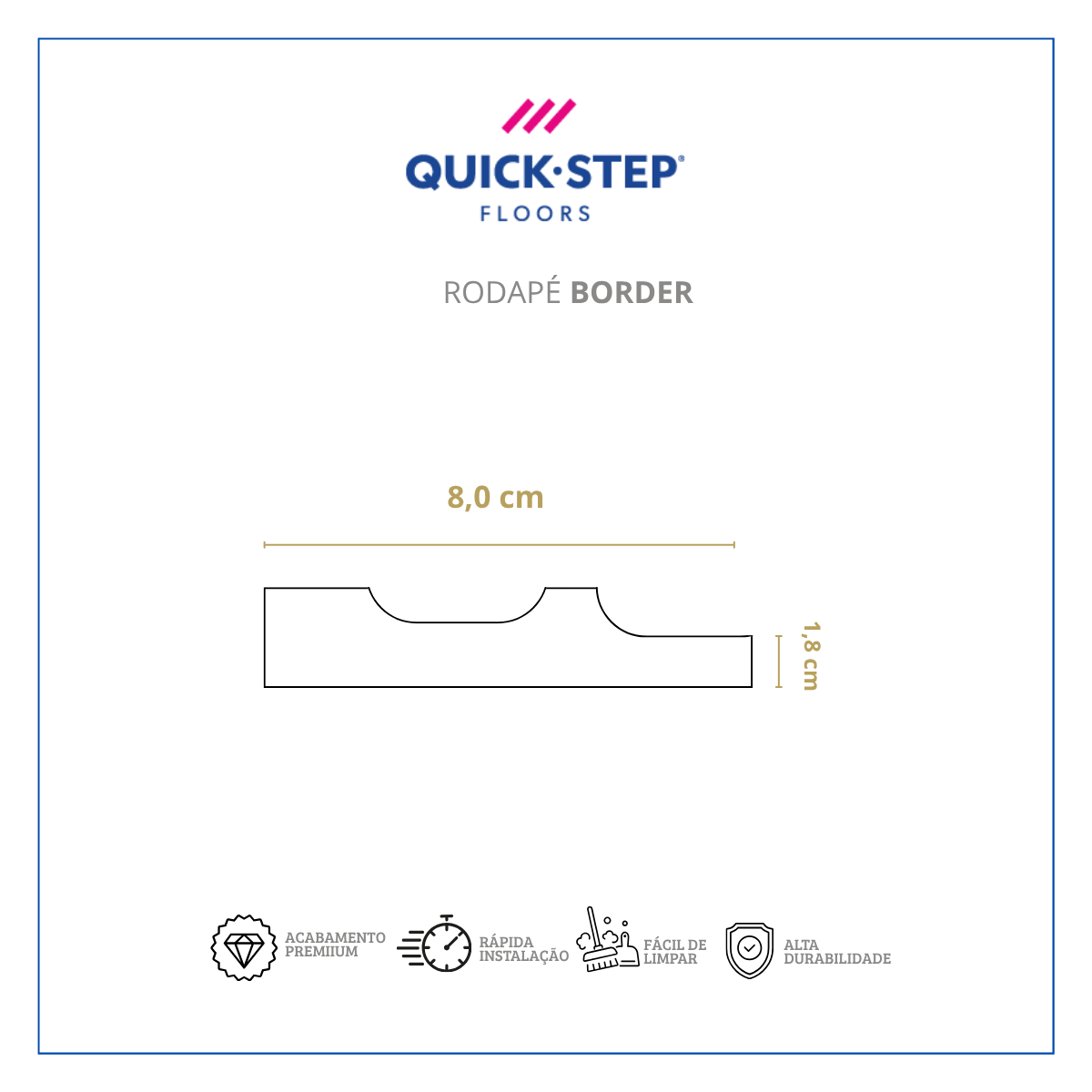 Acabamento Premium: O rodapé Border da Quick-Step oferece um design moderno e sofisticado, com linhas limpas que valorizam qualquer ambiente.