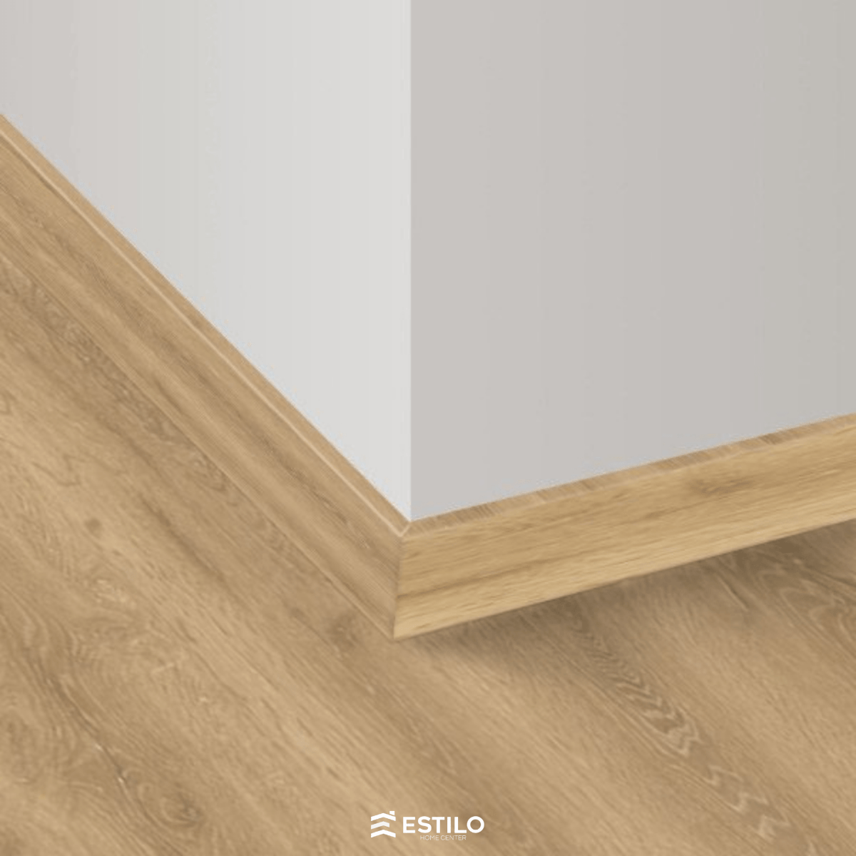 Marca Quick Step Categoria Rodapés Cor Carvalho Everest Linha Border Referência 0314 Aplicação Ambientes internos Material MDF Altura 8cm Comprimento 2,40m Espessura 1,8cm