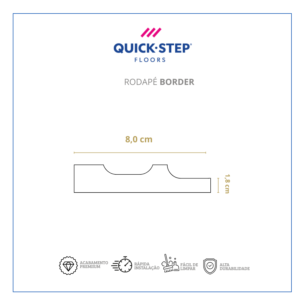 Acabamento Premium: O rodapé Border da Quick-Step oferece um design moderno e sofisticado, com linhas limpas que valorizam qualquer ambiente.