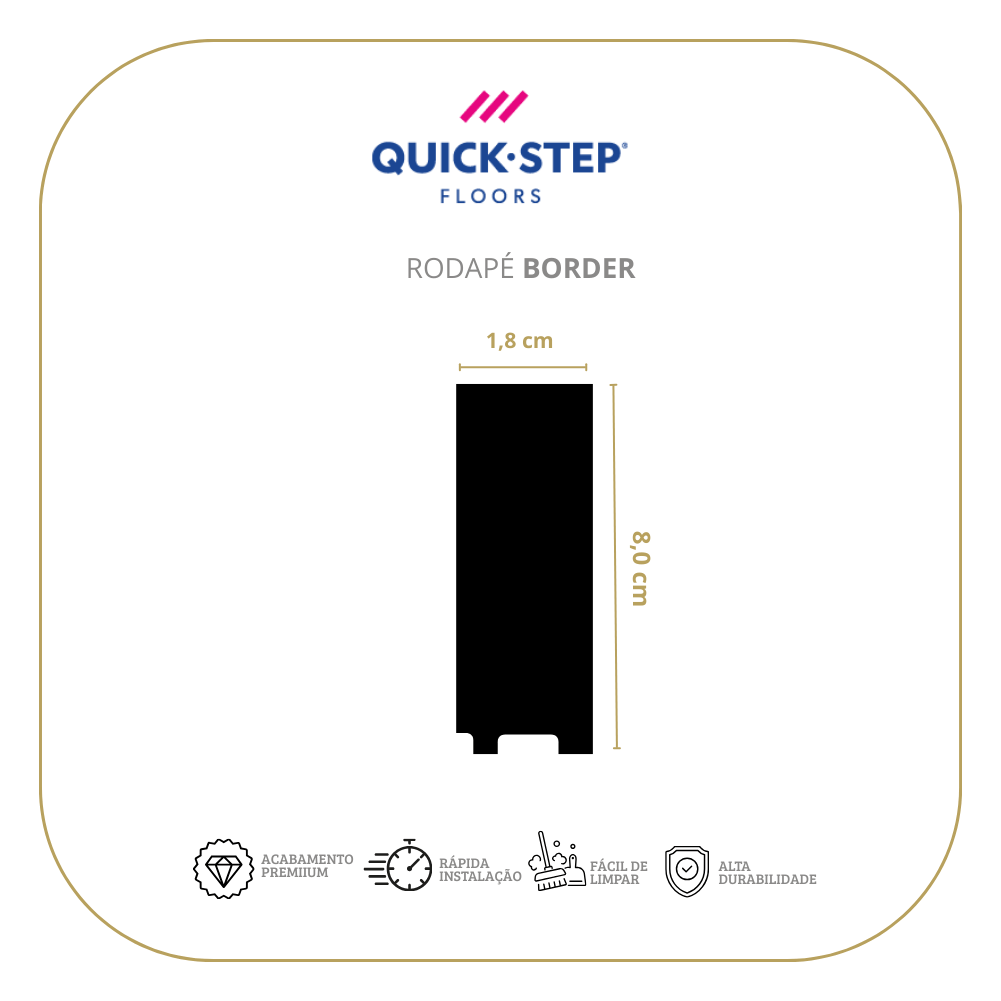 Acabamento Premium: O rodapé Border da Quick-Step oferece um design moderno e sofisticado, com linhas limpas que valorizam qualquer ambiente.
