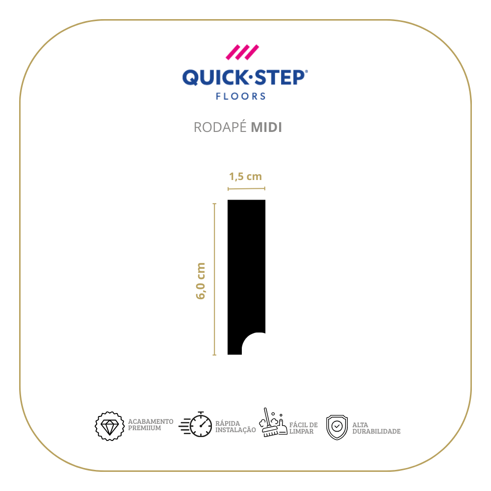 Os rodapés Midi Quick-Step possuem cores que combinam perfeitamente com todos os pisos de sua linha Premiere, deixando o ambiente ainda mais homogêneo e elegante.