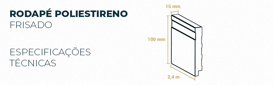 Com dimensões de 10cm de altura, 1,5cm de espessura e 240cm de comprimento por barra, este rodapé proporciona excelente cobertura com menor número de emendas. O design frisado é atemporal e se adapta a diversos estilos decorativos, desde os mais clássicos até composições contemporâneas que buscam elementos tradicionais como contraponto.