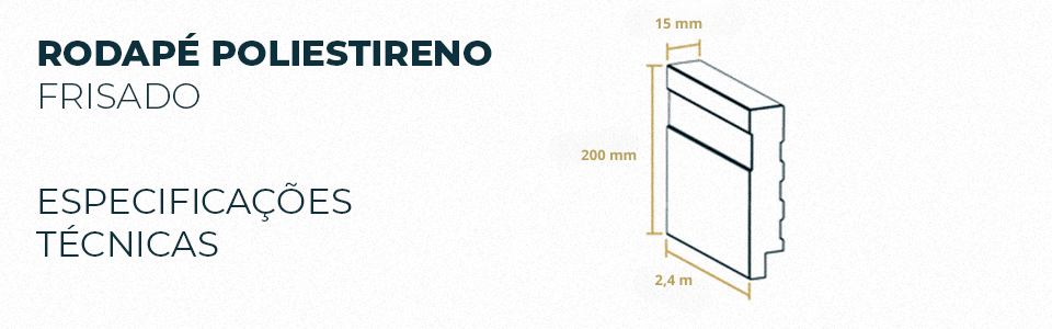 Com medidas de 20cm de altura, 1,5cm de espessura e 240cm de comprimento (barra), este rodapé proporciona excelente relação entre proteção da parede e elegância visual. O design frisado agrega sofisticação ao ambiente, criando um efeito de luz e sombra que valoriza a decoração.