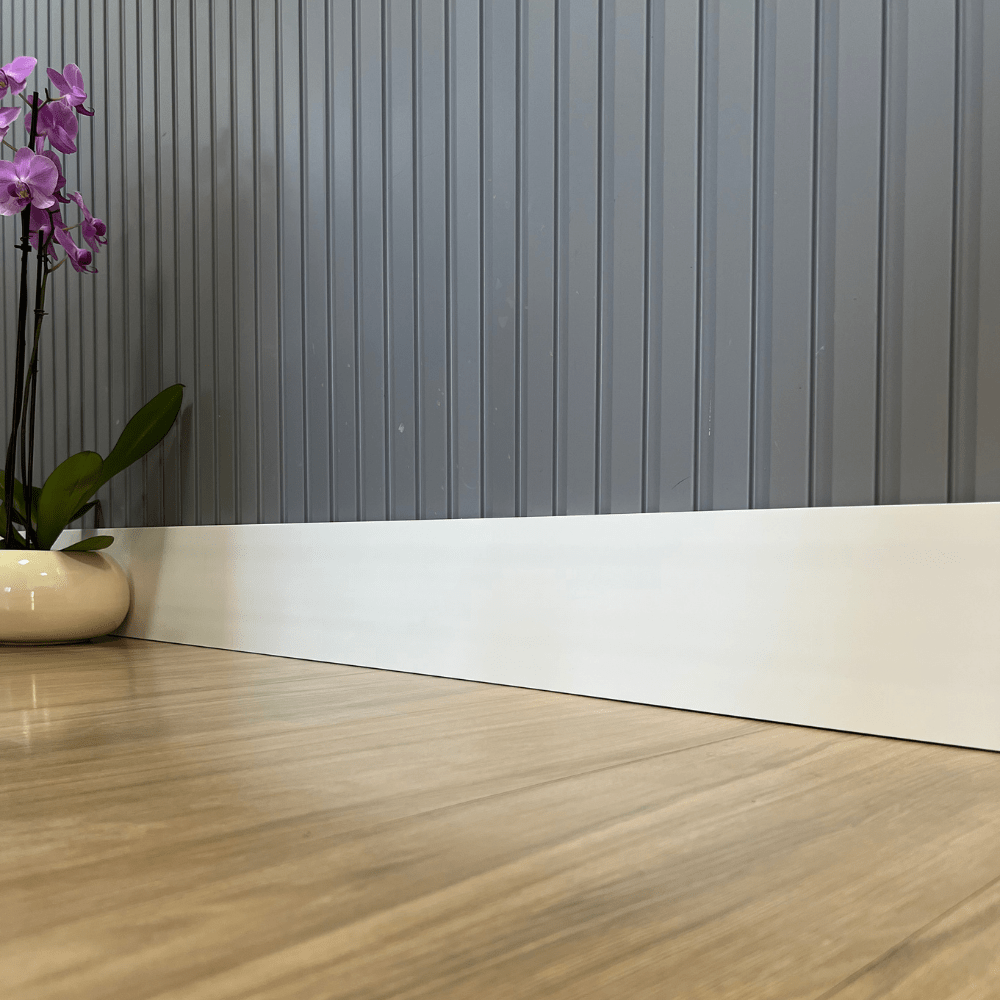 Acabamento moderno e discreto para a transição entre piso e parede.