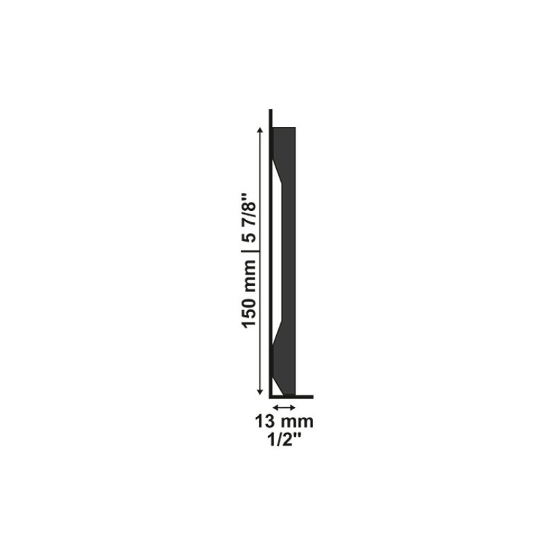 Com dimensões de 15cm de altura, 1,3cm de espessura e 240cm de comprimento por barra, este rodapé oferece excelente proteção para a base das paredes com um visual refinado. Seu design liso, sem frisos ou detalhes, cria um visual clean que valoriza a arquitetura do espaço, funcionando como um elemento de transição discreto e elegante.